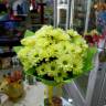 Романтика, счастье и теплота дружеских отношений соединены, в солнечном букете из желтых кустовых хризантем. Словно утреннее цветочное поле, купающееся в первых лучах солнца, выглядит оригинальная композиция. Дизайнеры продумали соответствующий декор к цветам, добавив немного яркой зелени в стильную упаковку из оберточной бумаги.